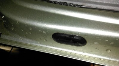 Też nie wiem czy dobrze, że zalepił te jajowate otwory. Nimi chyba ewentualna woda z plastikowego boczku ma spływać do wewnątrz drzwi i dopiero na zewnątrz otworami pokazanymi przez Laisara.