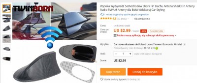 płetwy można kupić na alle i aliexpres, kosztują niewiele, kolory do wyboru, montaż banalny, jak z odbiorem, tego nie wiem, niby mają jakieś wzmacniacze ale poza miastem i daleko od przekaźniką może być różnie