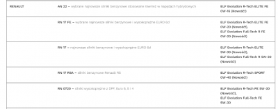 Ogólnie 2019 rok to jeszcze zalecenie elfa z normą RN0720 Elf Full-Tech FE 5w30, lub Full-Tech R 5w30- norma RN17.